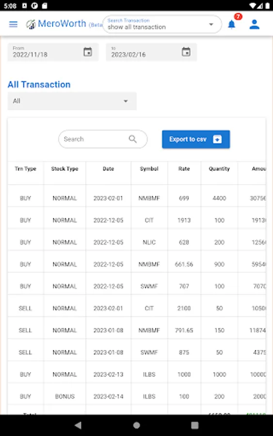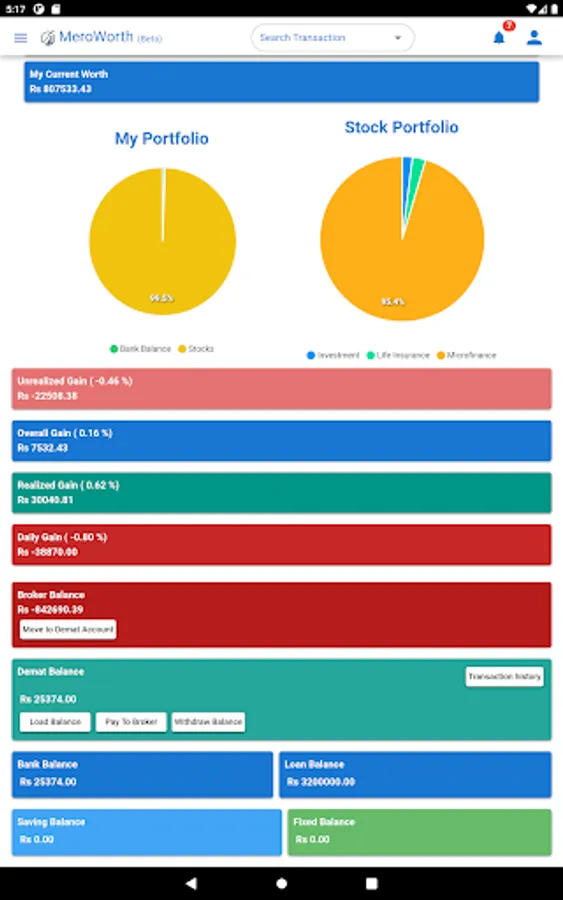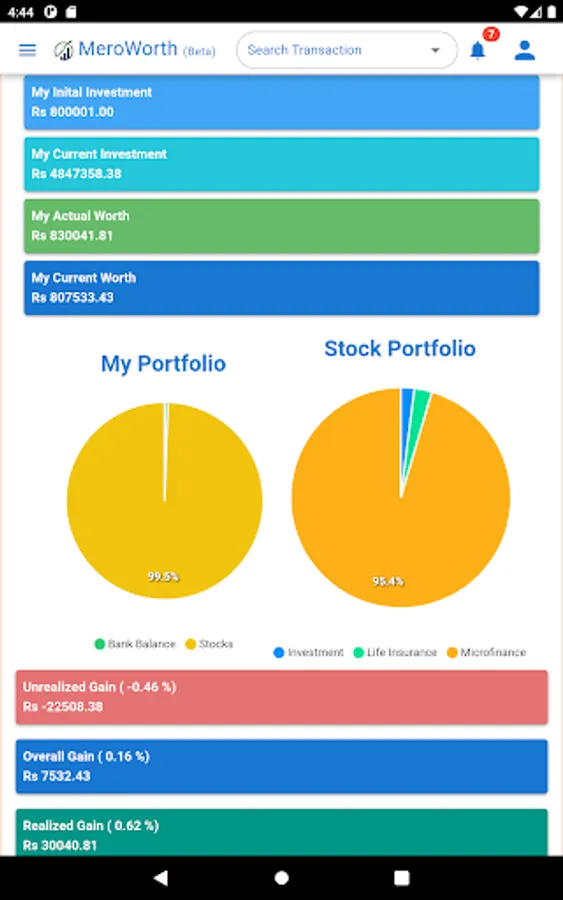 Meroworth application is designed to track your latest worth by automatic calculation. Meroworth supports managing your Demat, bank accounts, real estate, and commodity profile. It gives the accurate value of your investment and the return back from an investment. Not only that it also provides the value as per the LTP of your stocks. Records the value of your commodities. Meroworth provides you with all the tracking of your worth on the same platform in one click.