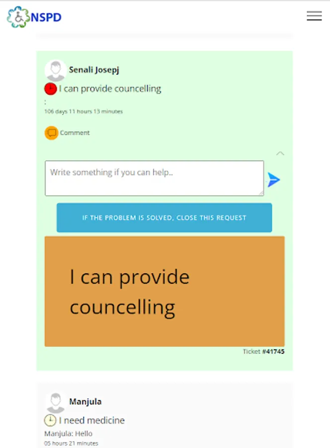 All unresolved problems are listed in the system and anyone can login and write comments and take action to help anyone.