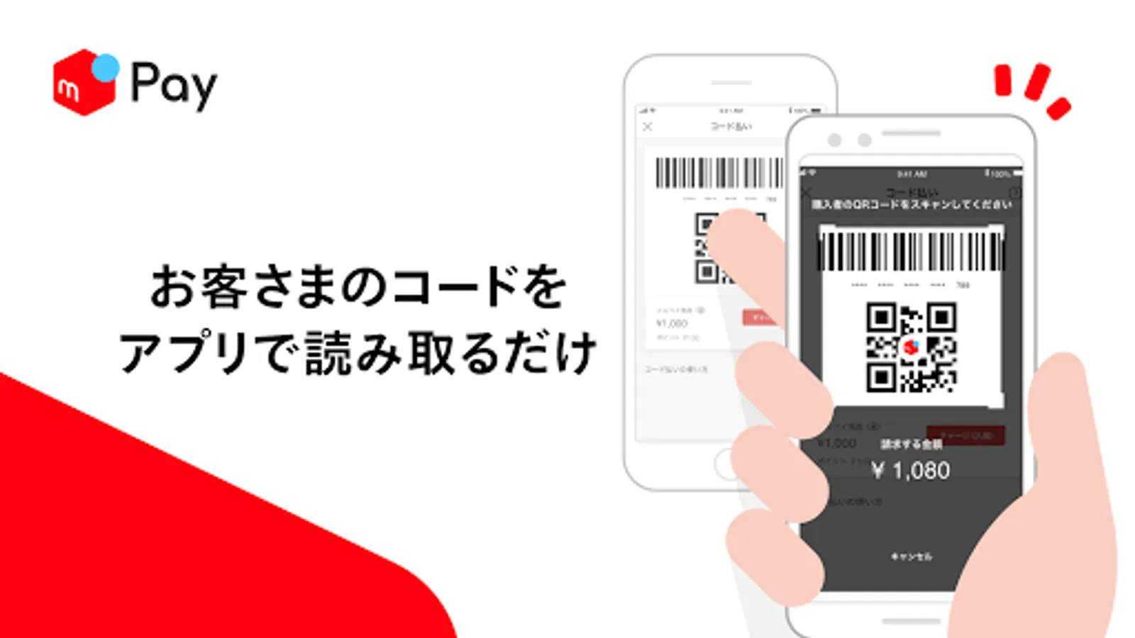 本アプリに会計金額を入力し、お客さまの「メルカリ」内に表示されるQRコードを本アプリでスキャンすることで、簡単に決済ができます。