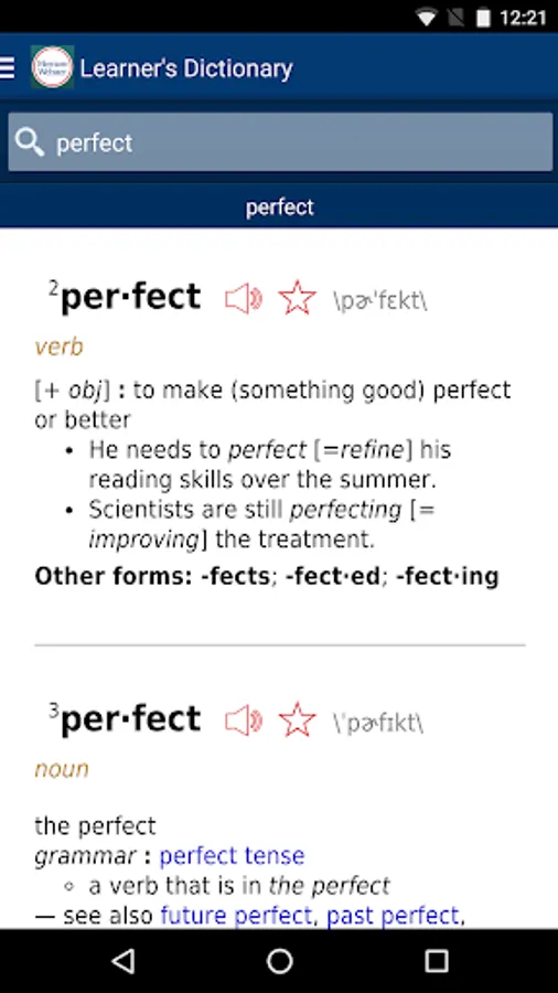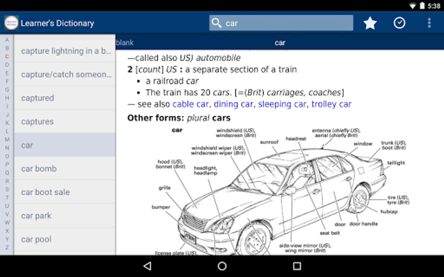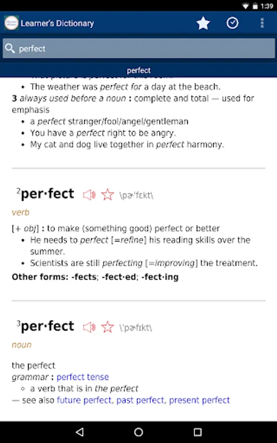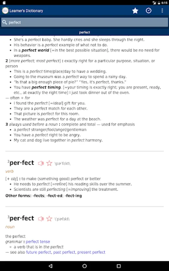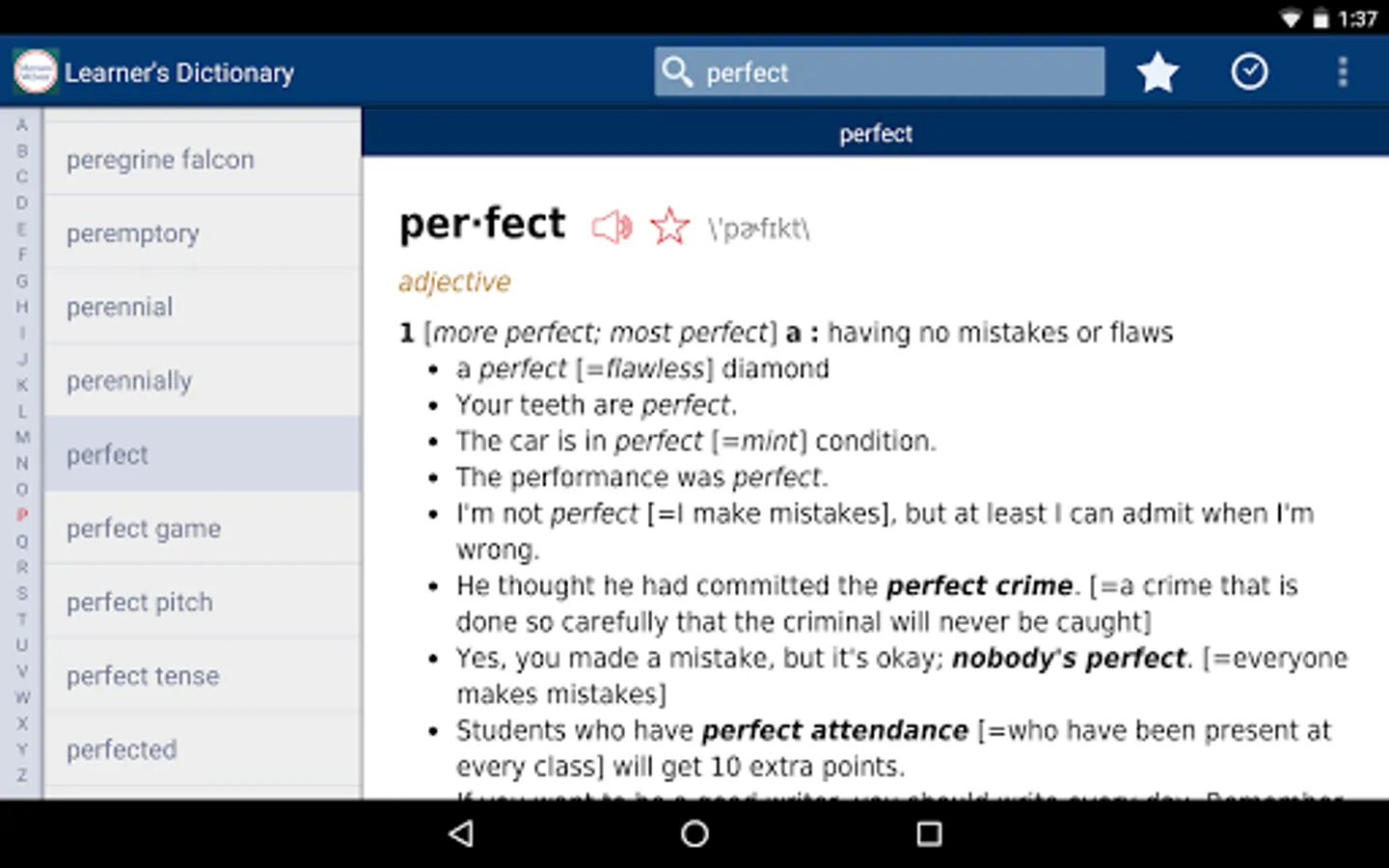 Improve your understanding of English words and phrases with full, clear definitions and numerous usage examples. The app also offers Voice Search – to let you look up a word without having to spell it – along with Audio Pronunciations, Word of the Day, Favorites, and more.