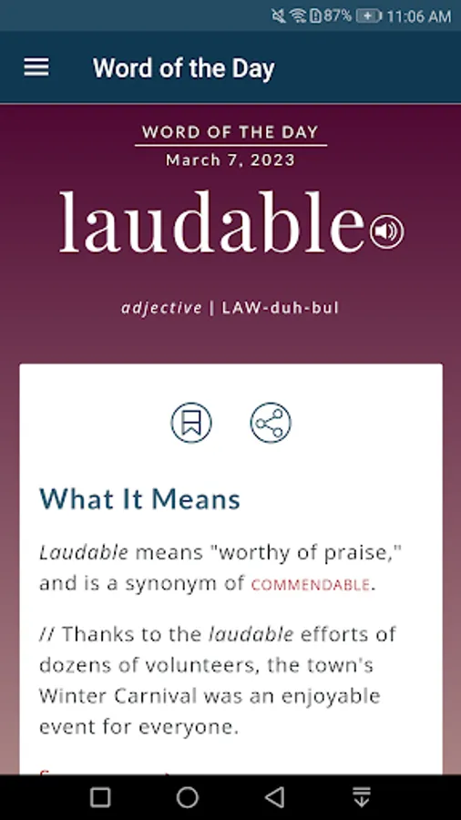Get America’s most useful and respected dictionary, optimized for your Android device. Continuously updated with the newest words and meanings, this is the premier Android app for English language reference, education, and vocabulary building.