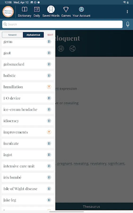 * Favorite Words and Search History: keep track of the words that are most important to you
