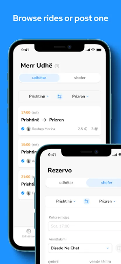 Udhë offers drivers the ability to post the ride with information like the number of seats, the price per seat, and a meeting point. On the other hand, we offer passengers the possibility to reserve a free seat while reviewing the ride information.