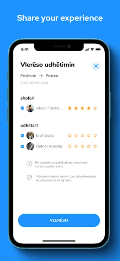Users can chat with each other through the platform chat to coordinate for the ride and after the ride is finished, users can review each other.