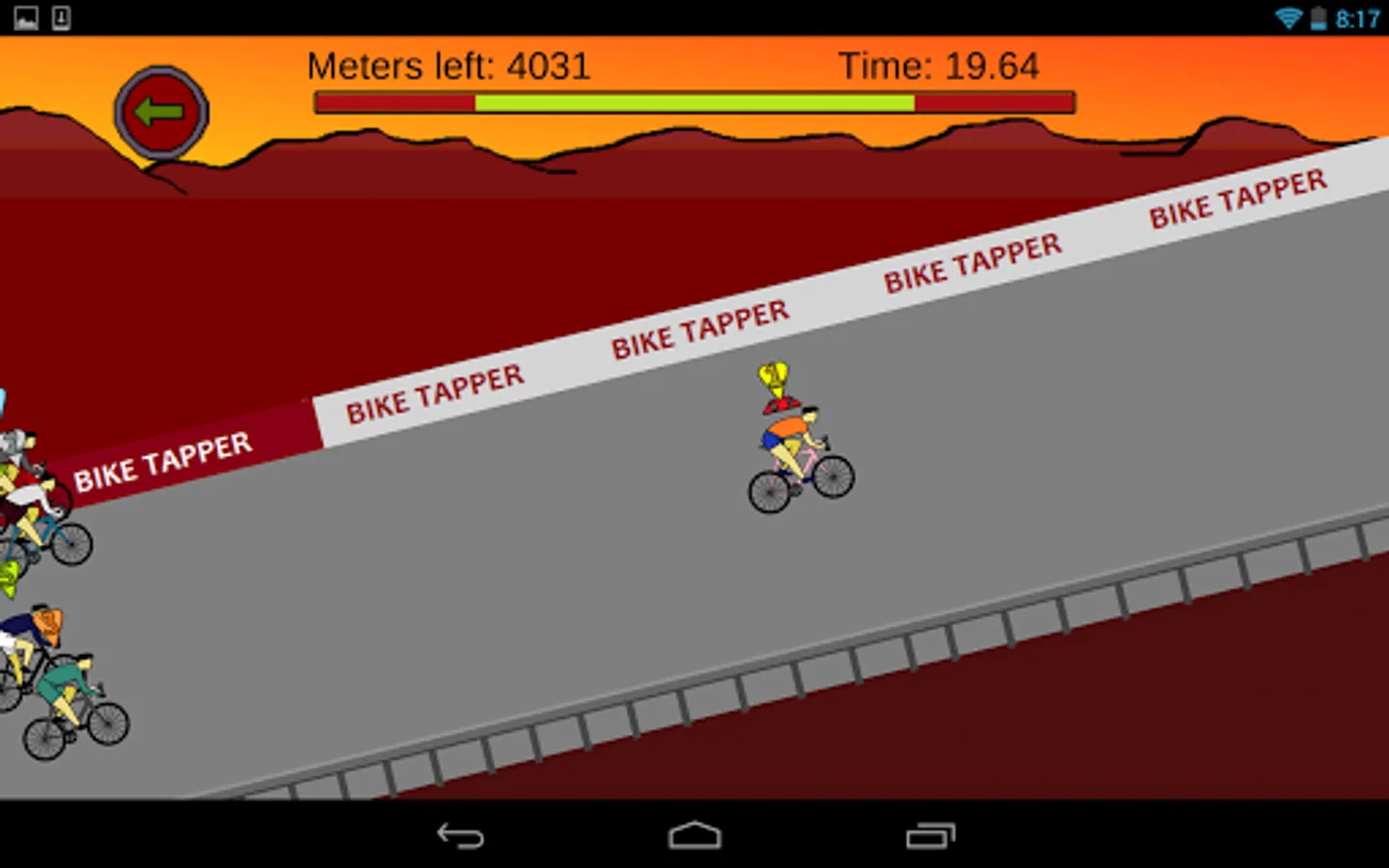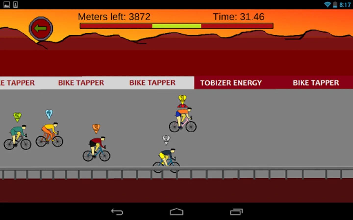 There are 42 levels each increasing in difficulty. Every time a race is won prize money is given. Each level has unique terrain and scenery. Some levels are mostly downhill and other allow for uphill and even sprinting. In every case Bike Tapper will require you to tap away to conquer such tough competitions.