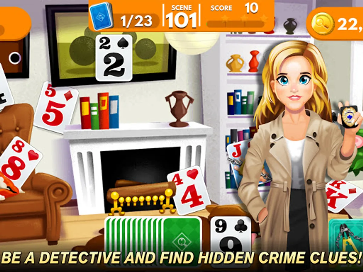 We have a perfect game for you to solve crimes and become the master Solitaire Mystery Detective. Come play the Mystery Solitaire card game. A criminal twist on your favorite Solitare classic card games. We bring you endless fun and challenges with various TriPeaks Solitaire crime stories, we ask your help to solve the mysteries. Start your Solitaire Detectives adventure, solve puzzles, and win levels! Play this amazing Solitare Card game.