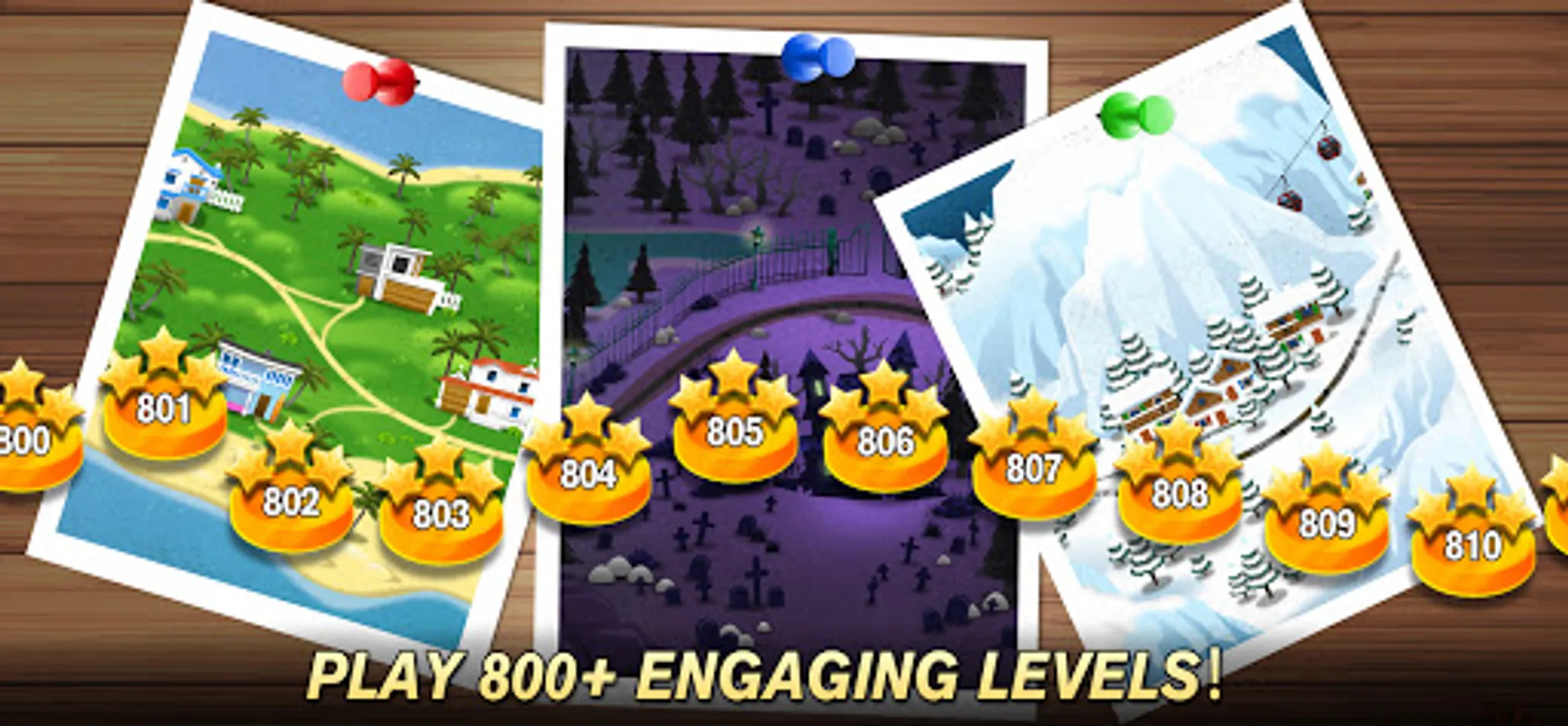 As you get better and better at solving the cases, become an expert Solitare TriPeaks mystery detective and increase your salary and experience! Discover hidden clues, and uncover secrets as you solve mystery levels. Relax with this exciting mystery TriPeaks Solitaire games free, and solve and unravel mysteries across different landscapes like Hearts by the sea, Tinyville, Stormy mountains, Mount Monroe, and Happy cow farm. Play this TriPeaks Solitaire mystery TriPeak board game and solve different Solitaire crime stories. Experience the thrill of solving a mystery with our Fairway Solitaire game. Can you unravel the clues and triumph?