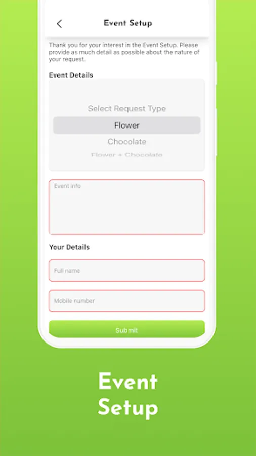Submit your event setup request to create the appropriate yet graceful ambiance playing with different flowers and chocolates to suit and elevate the significance of your occasion.