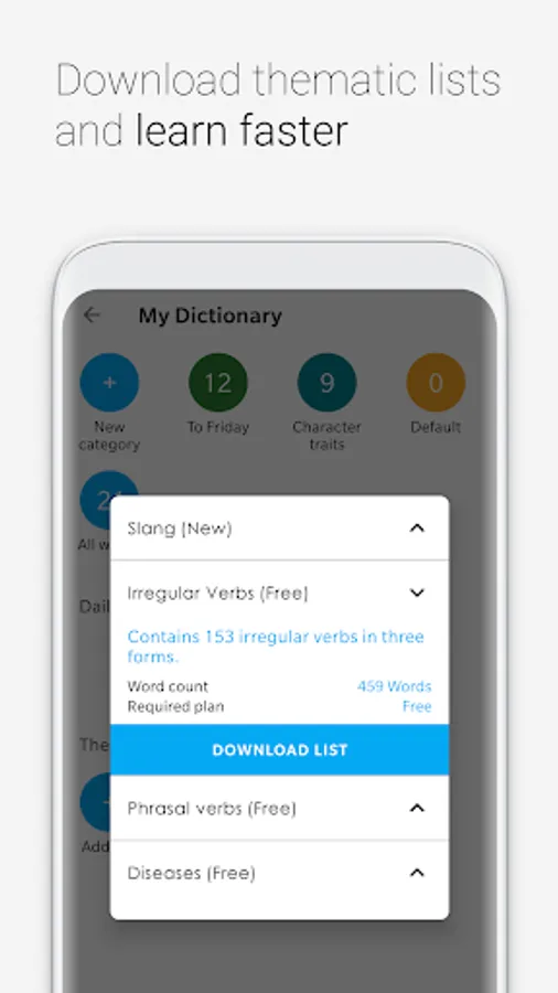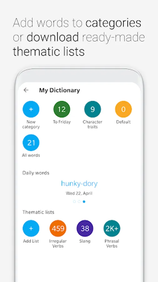 You can add interesting words in your own dictionary and app will help you to learn them faster!