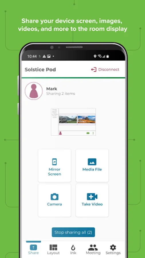 Mersive Solstice is a high-performance teamspace collaboration platform that improves the usability and productivity of meeting and learning spaces. The Solstice App enables users on any device to wirelessly share, control, and mark up unlimited content on a Solstice-enabled display to drive more efficient, engaging, and collaborative meetings.