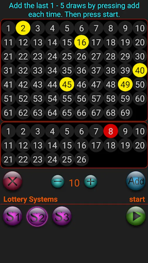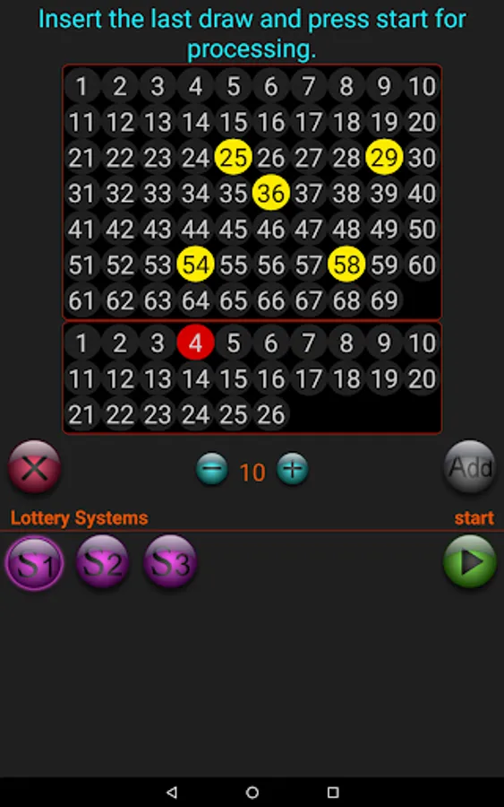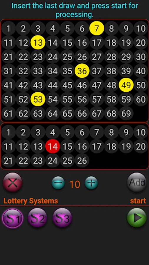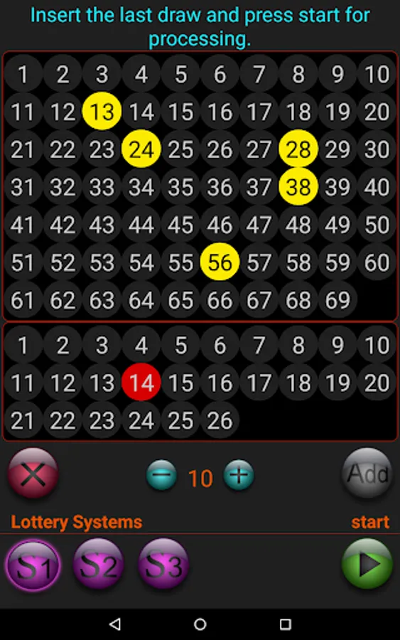 1- Insert the last draw, then a random set of numbers are generating and when there is a match then generates the next hypothetical set of numbers that may come up next.