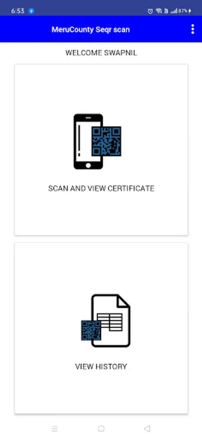MeruCounty SeQR Scan is a QR & 1D BarCode scanner which can be used for a broad range of applications in real-time. It can read encrypted QR codes and 1D Barcodes which are printed on Government documents, Educational certificates, mark sheet and many more.