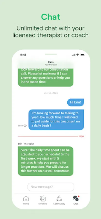 1. Up to four face-to-face therapy sessions, via video call, plus unlimited support via in-app chat—all with a licensed therapist who will be with you for the duration of the program.