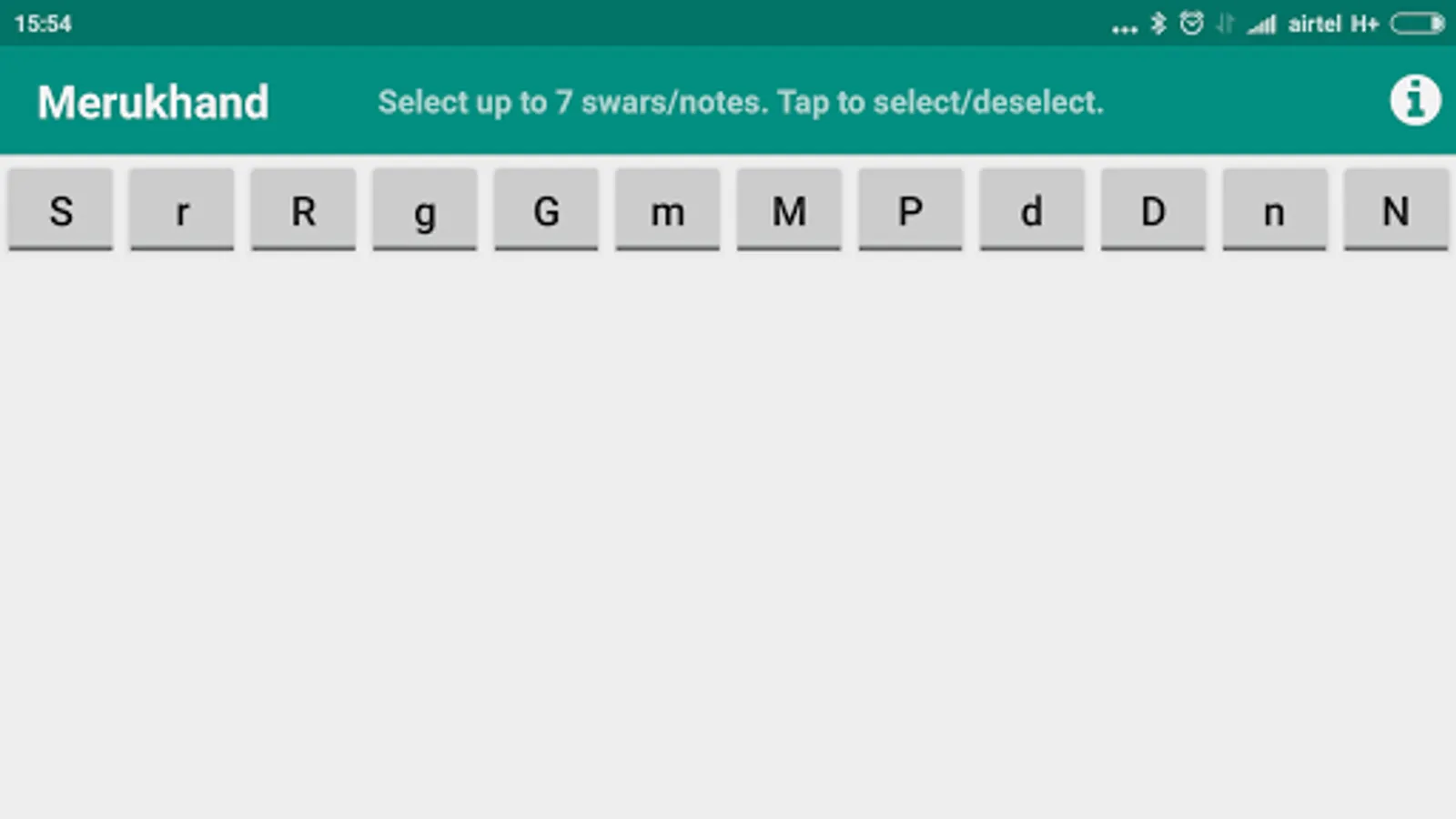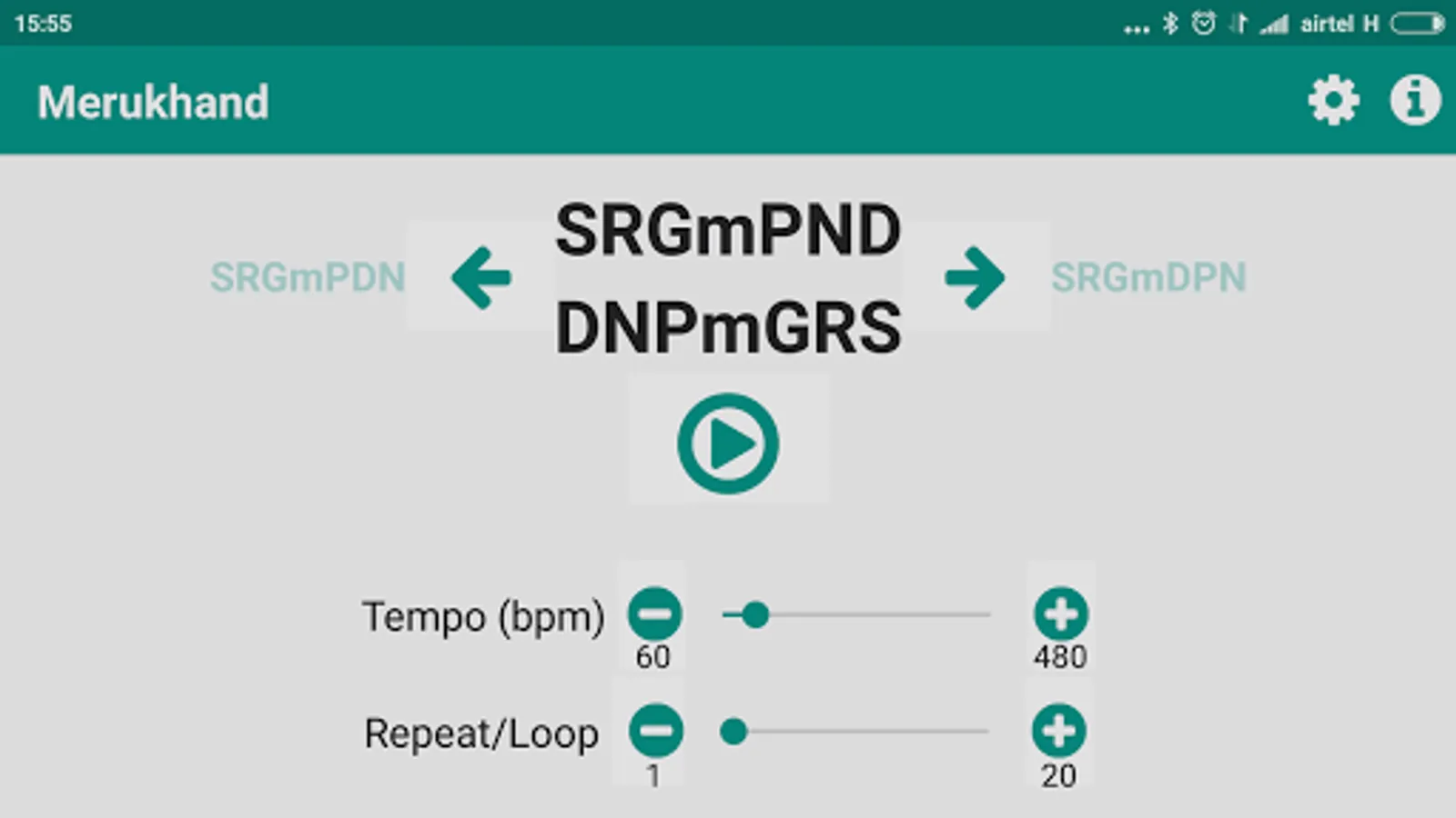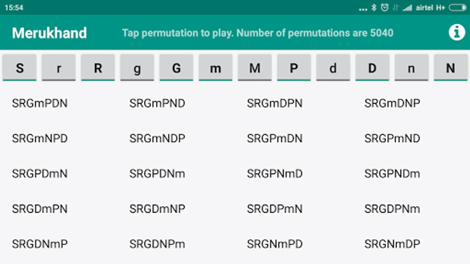 Merukhand used in Indian Classical Music. The concept is used to systematically explore any given Raag, whether it is "Alaap" (Introduction), "Raag Vistaar" (Elaboration), etc. Quite simply, the app displays and play all possible permutations of the selected swars.