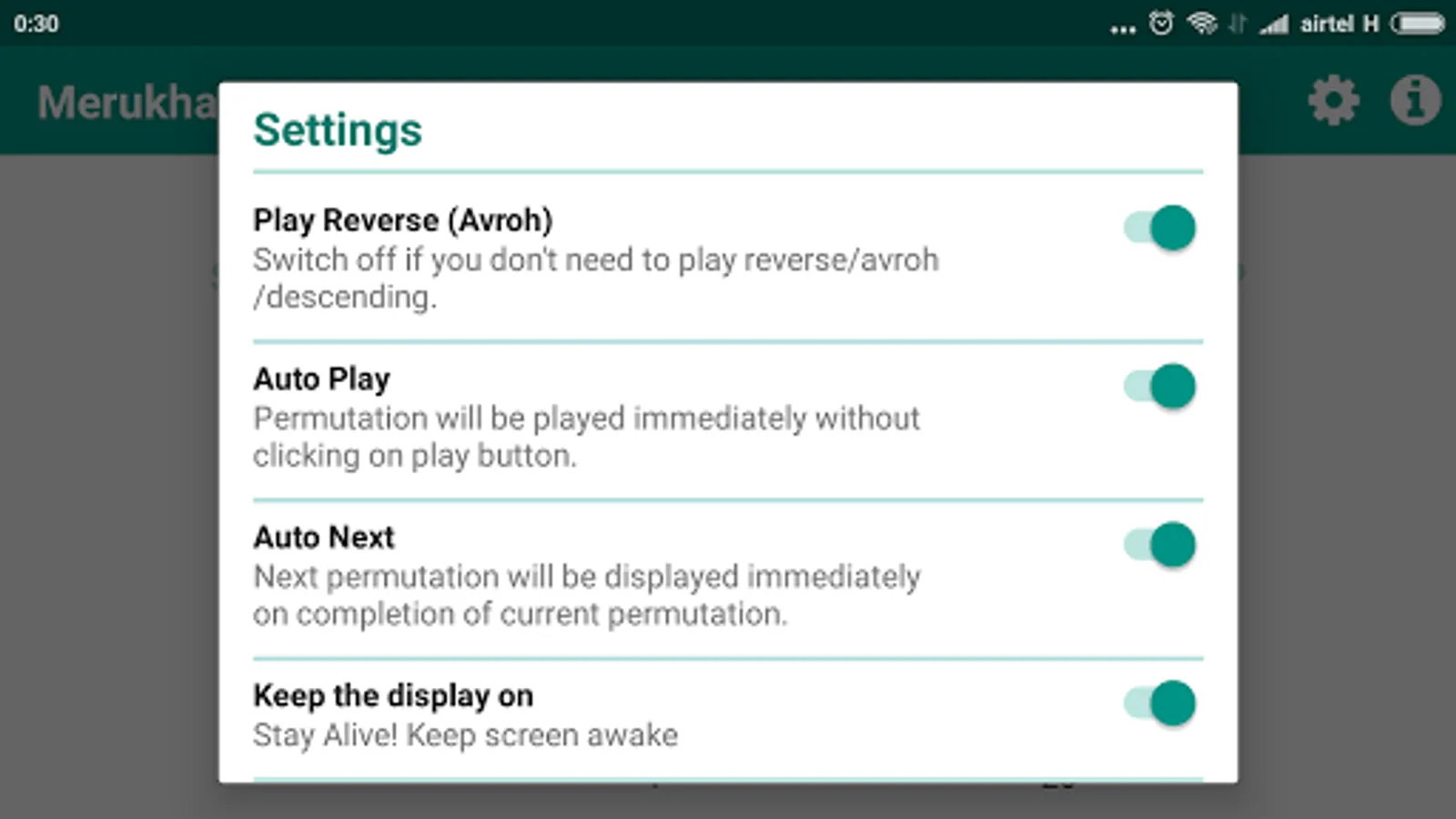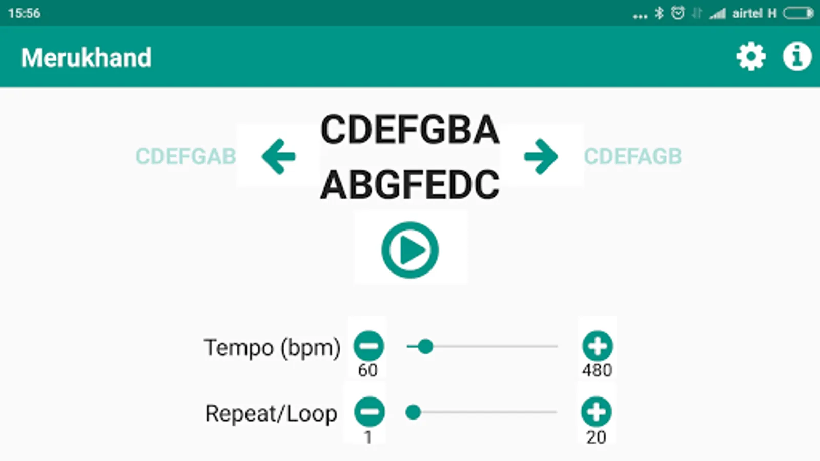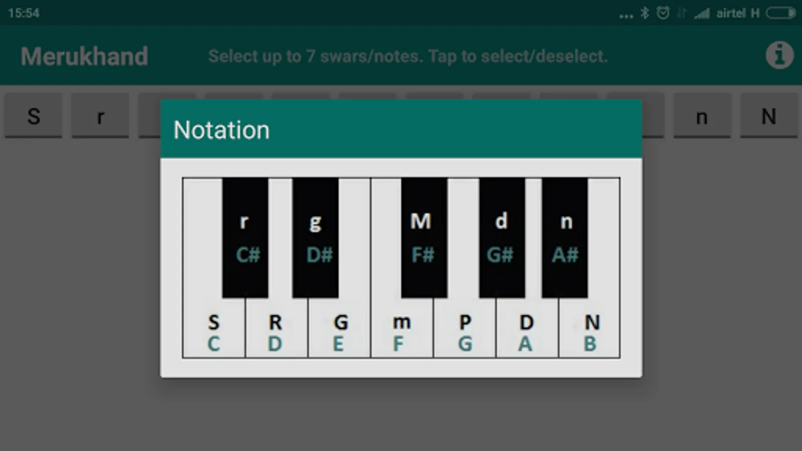 Merukhand used in Indian Classical Music. The concept is used to systematically explore any given Raag, whether it is "Alaap" (Introduction), "Raag Vistaar" (Elaboration), etc. Quite simply, the app displays and play all possible permutations of the selected swars.
