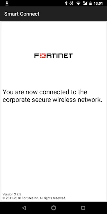 The Fortinet Smart Connect app allows your wireless settings to be automatically configured to securely connect you to a wireless network.