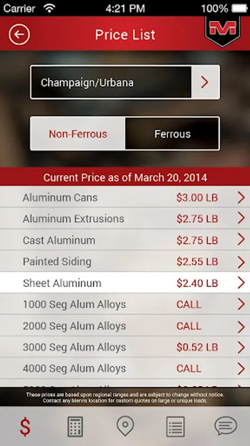 Pricing: See current average pricing for your specific material at your desired drop off location with this feature. For more specific pricing questions, please contact Mervis Recycling.