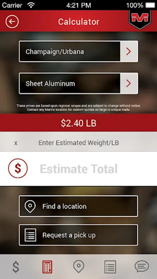 Calculator: Want to know ahead of time how much cash you can get for your load? The Mervis Scrap App calculator allows you to choose your material, the estimated weight, and provides you with an estimated payout.