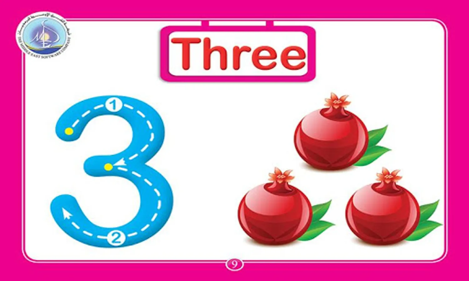 2- كلمات تعليمية على كل رقم مكتوبة ومنطوقة.