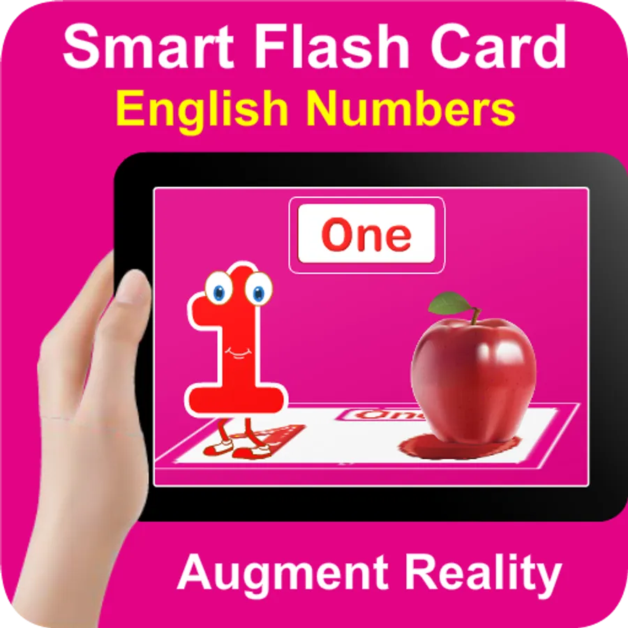 يعمل تطبيق الأرقام الإنجليزية بتقنيات الواقع المعزز والمُجسمات مع كروت "فلاش كارد" المطبوعة الخاصة به.