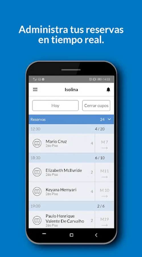 With the technology of MESA 24/7 you can manage your restaurant reservations in real time easily from your cell phone or tablet, control all your premises from one place, get key data from your customers with our statistics that will allow you to analyze the percentage of male vs. male customers women and new customers vs. frequent so that you can maximize your sales and many other things that will allow you to improve the logistics of your business.