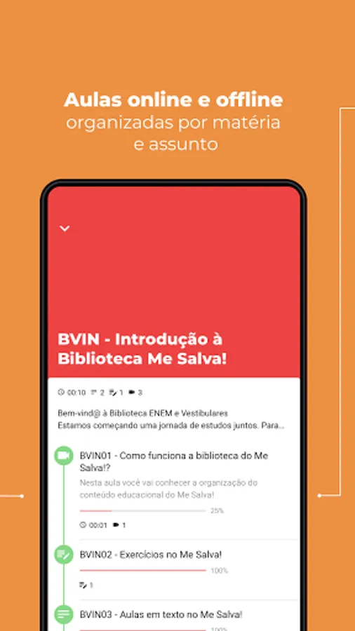 Download the best online course app for those who want to pass at the federal university. Get access to the most famous offline and online classes on the internet from online courses Me Salva! We are the most complete and focused online preparatory course for those who are going to take the ENEM 2022. Study with those who are TOP in offline classes and exercises for ENEM, vestibular and online courses for and ENEM.