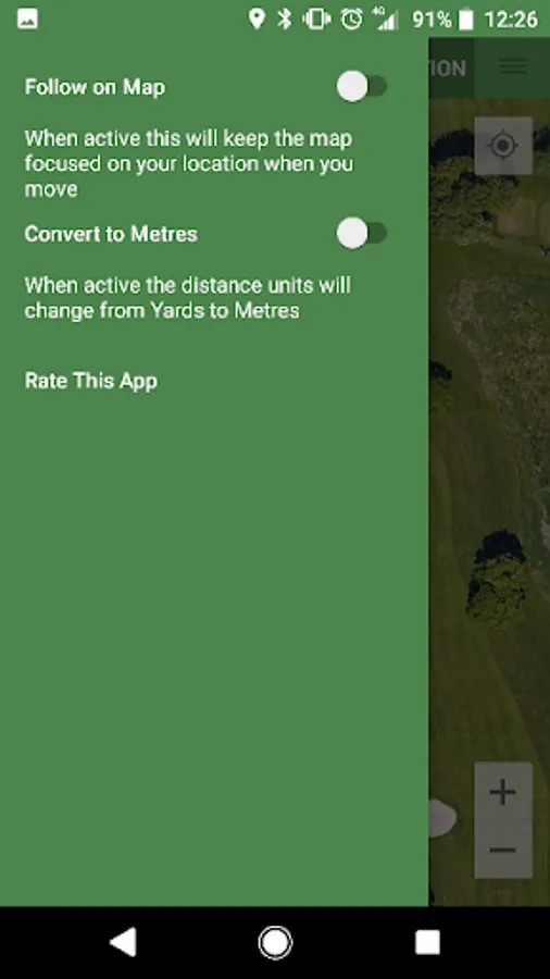 - Switch between yards and metres easily and quickly on a slide out menu accessible by just swiping left to right.