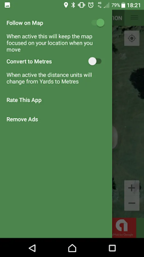 - Switch between yards and metres easily and quickly on a slide out menu accessible by just swiping left to right.