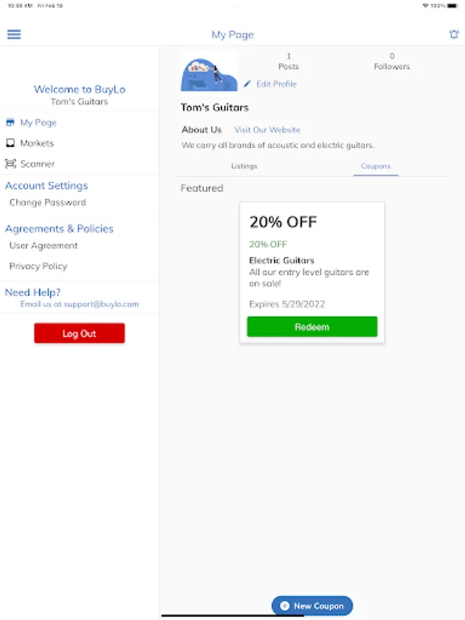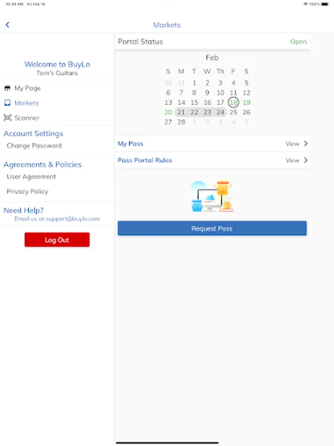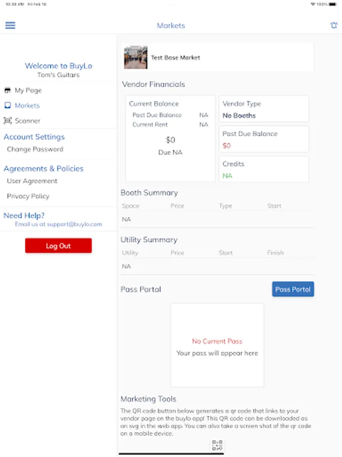 Welcome to the BuyLo Vendors app. This app serves as a portal for vendors to upload photos at our participating markets. A login from a participating market is needed to access the functionality of this app. Once logged in, vendors can upload images of their items to be displayed on our other platforms. They can receive messages from the office and view their vendor profile.