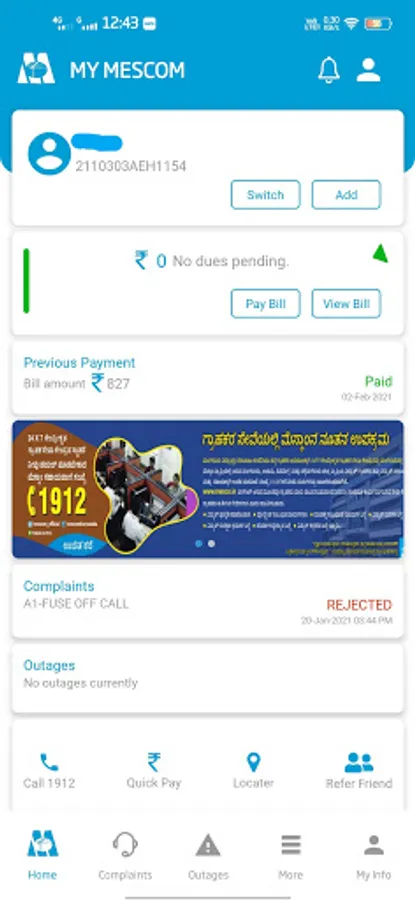 Nanna MESCOM is an official Mobile APP of MESCOM which offers following services at your fingertips