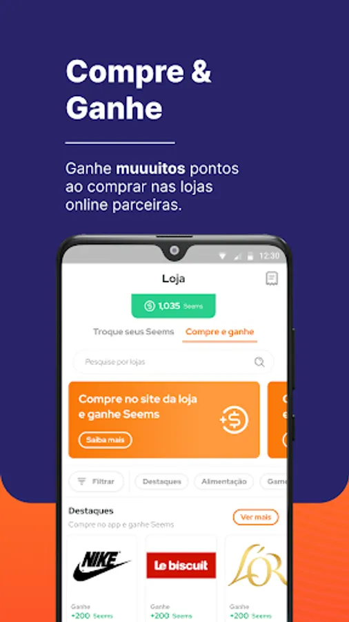 With MeSeems, you buy from the biggest stores on the internet and earn much more points. And the more points, the more rewards you redeem. Discover some of the more than 100 partner online stores: Casas Bahia, Americanas.com, Submarino, Lojas Renner, O Boticário, C&A, Avon, Centauro and many others.