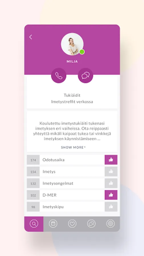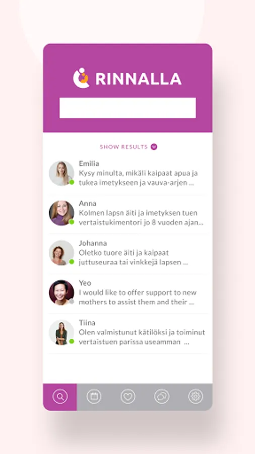 Breastfeeding support mothers have knowledge of the various challenges of breastfeeding brought about by education and experience. Conversations take place in the app between the two by typing or calling, and are always confidential.