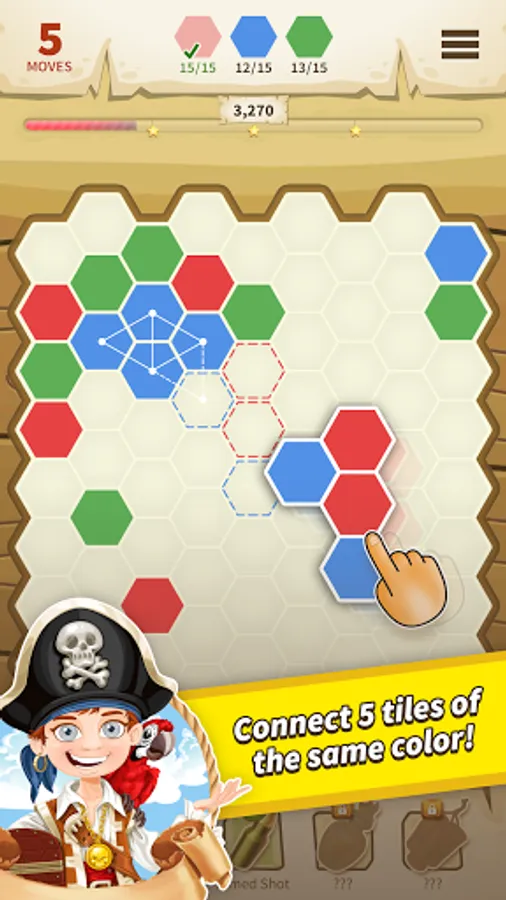 Me Shall See Studios presents “Connect Five!” --- a colorful and unique puzzle game that lets you place blocks of different shapes and colors on a puzzle field. You must clear the field by connecting 5 tiles of the same matching color!