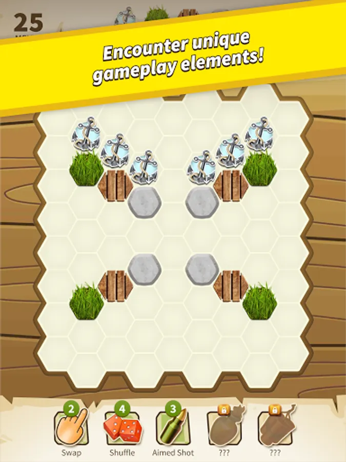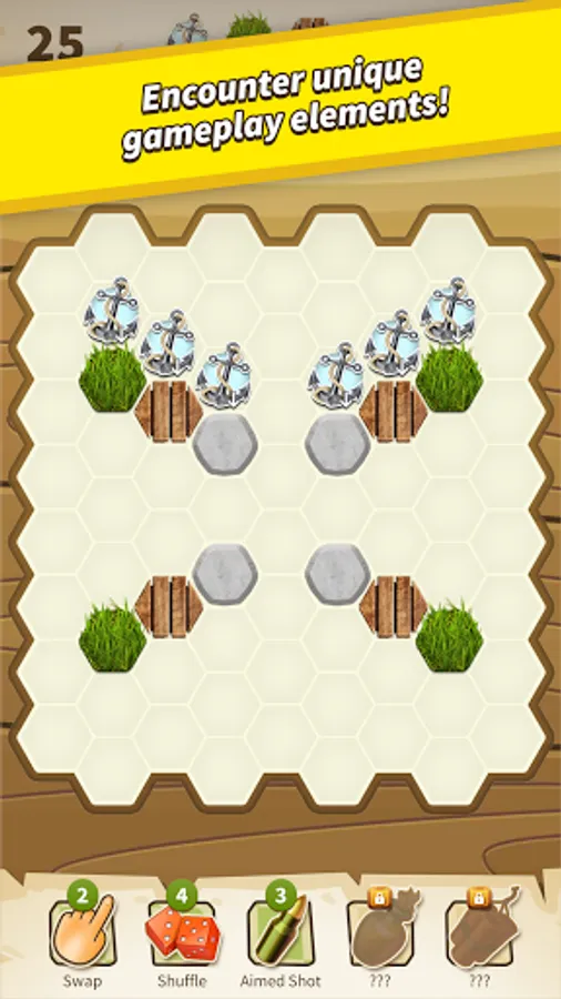 • Unique gameplay elements: Grass, Wood, Stones, Anchors, Ice Crystals, and more;
