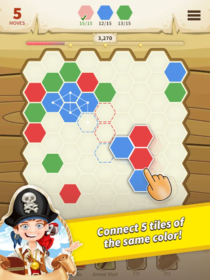 • Match 5 tiles of the same color;