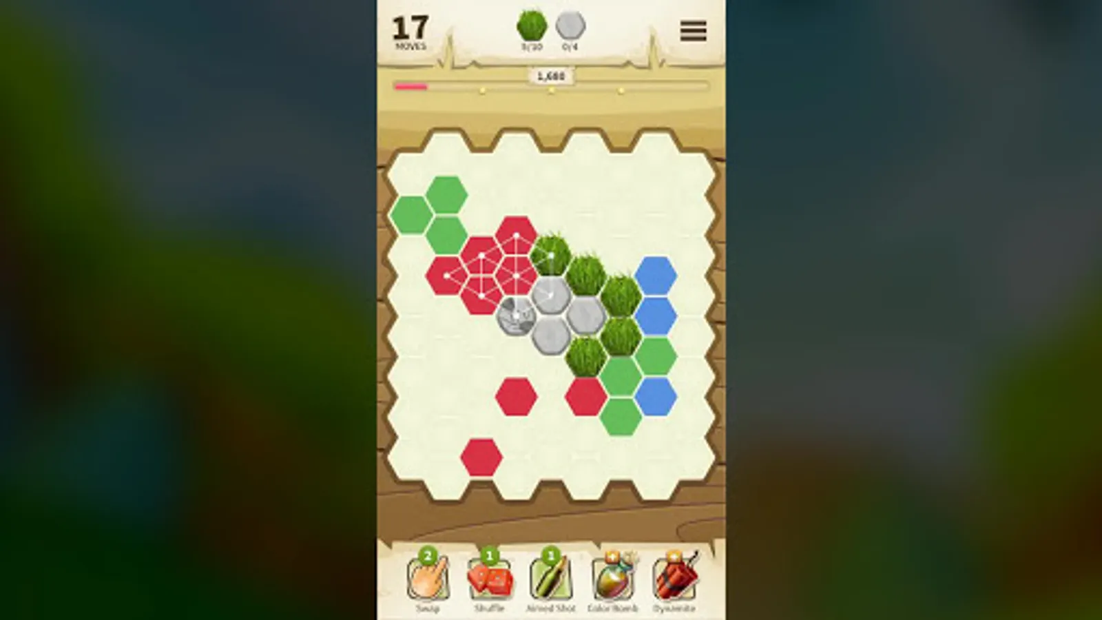 Different elements provide a unique gameplay. Puzzle your way through challenging Grass, Wood and Stone levels; make Anchors drop and make Balloons float off the board; break layers of Ice in different colors; clean up Slime; and stop Fire from spreading!