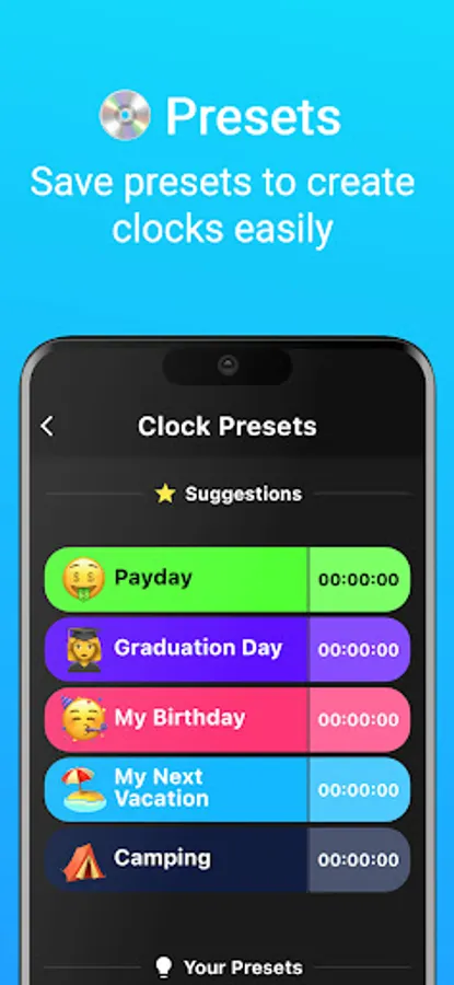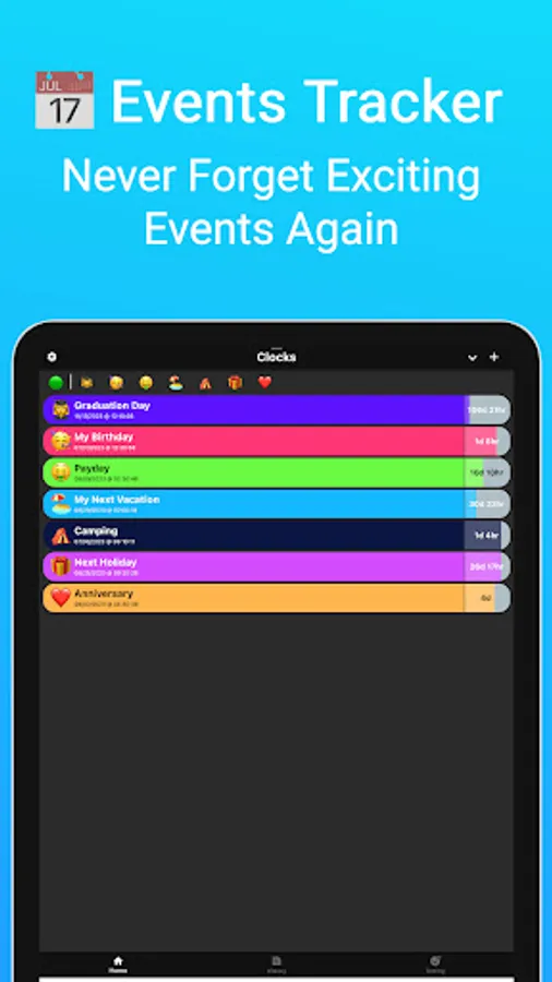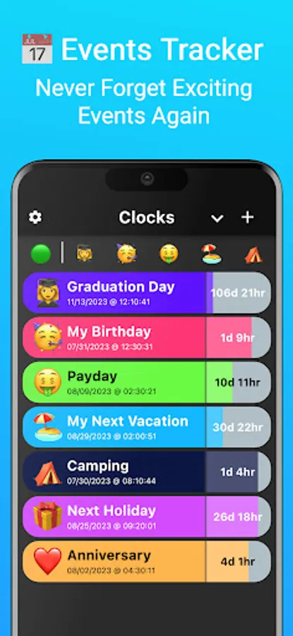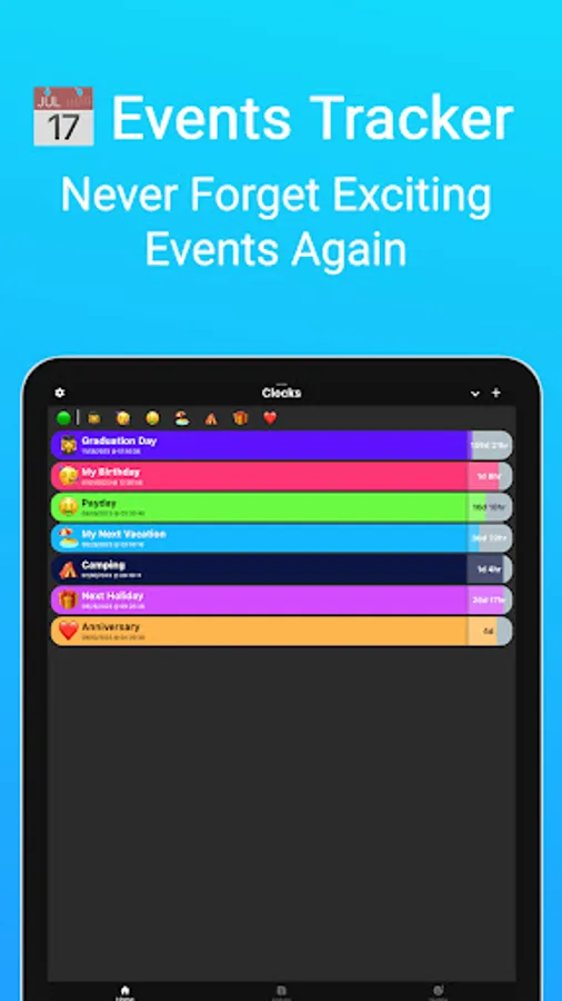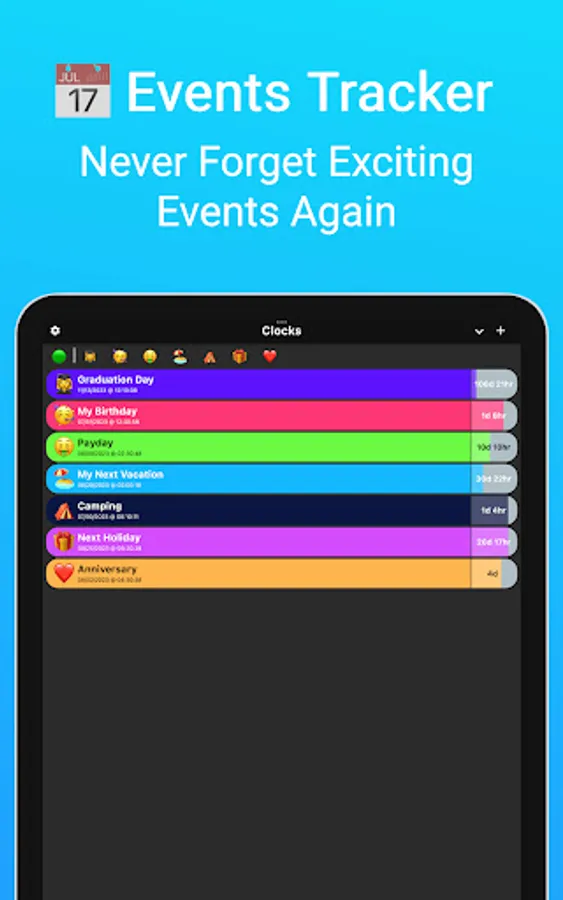 We've built this app around the idea of fun & excitement: Experience the anticipation of your upcoming events every time you launch the app!