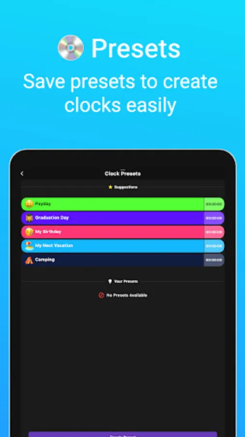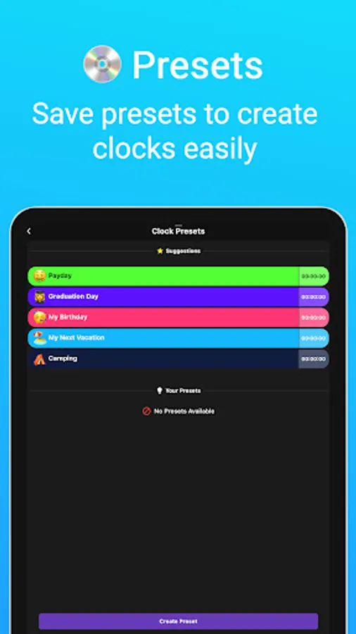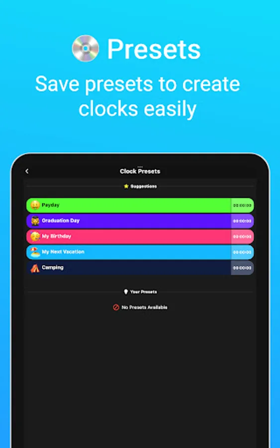 (-) We've included some preset suggestions to give you some inspiration! Check them out! (or hide them, that's also an option)