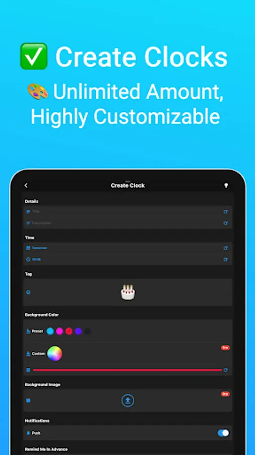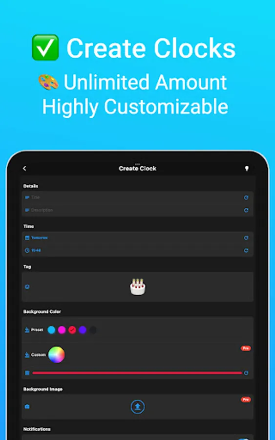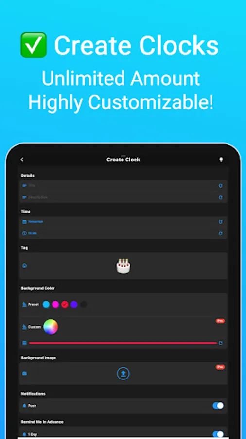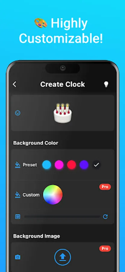 (-) Customize: Give your event some life with custom color, emoji tag, or even upload your own photo as a background image