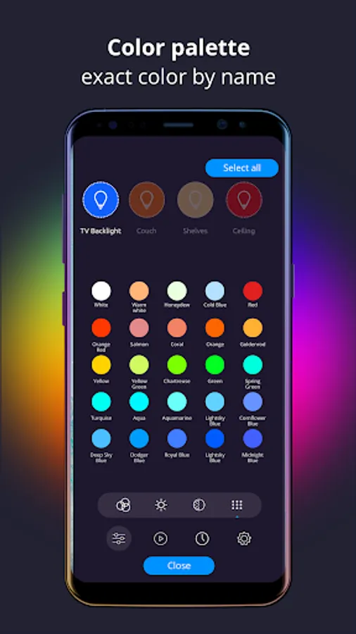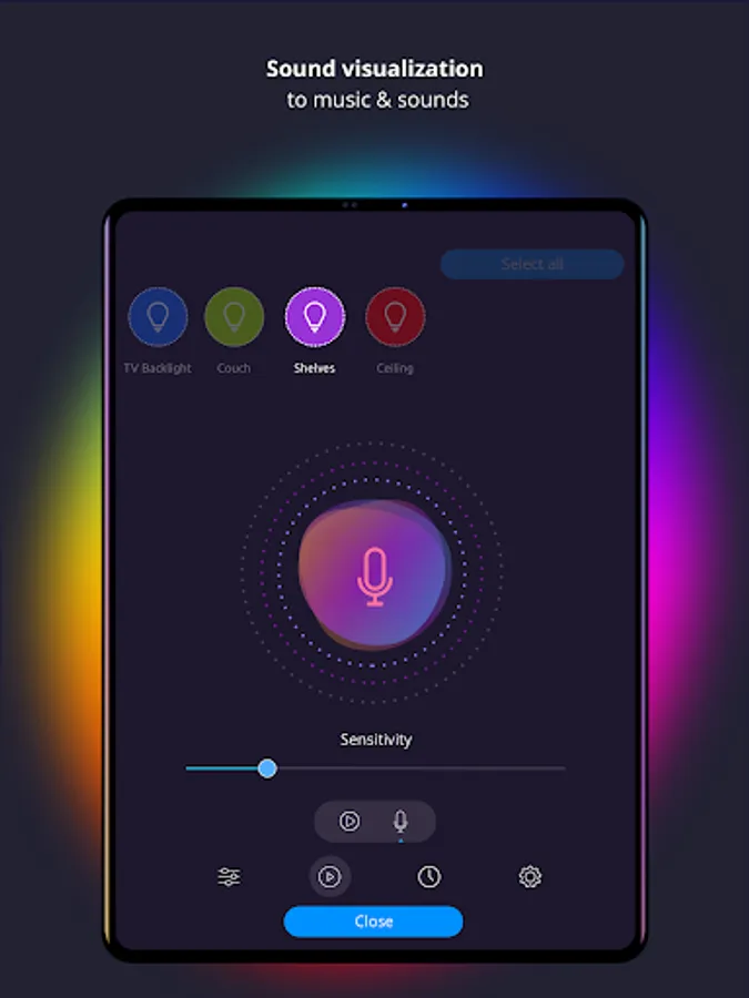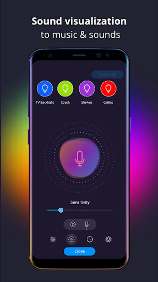 Listen to your favorite music with colorful sound visualization of your LED strips.