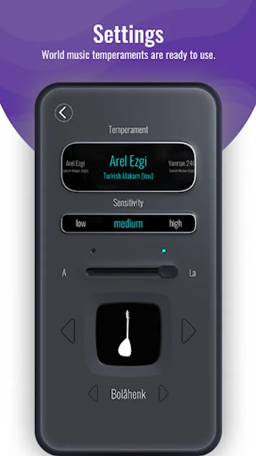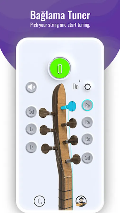 Specific Tuning feature for bağlama. It is perfect for complete beginner bağlama players. Bağlama Tuning Feature allows you to learn the strings and tune them one by one.