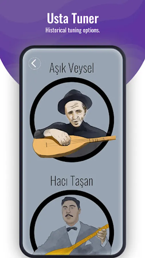 Tuning presents were analyzed and collected according to the master's original performances. For instance, you can fine-tune your instrument into Aşık Veysel's scale. You are ready to play with the master's original tunes.