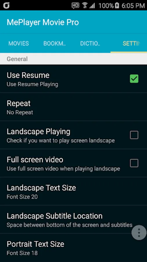 10. Setting: Resume Play, Dictionary Selection, Horizontal View/Vertical View and other details can be set.