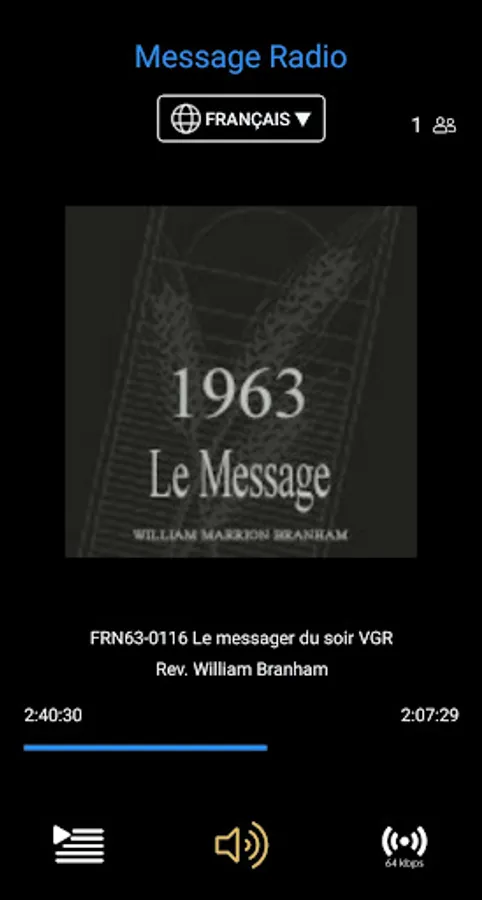 This Christian Radio mainly aims to broadcast the sermons, audio books, as well as the songs of Rev. William Marrion Branham; Let's also add to this that the lemessagefrancais.com team puts on audio the reading of the letters of the Rev. Joseph Branham in some languages, and some of the Audiobooks translated by VGR.