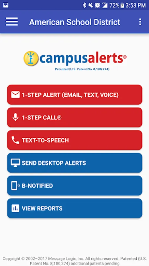 Campus Alerts® is Patented (U.S. Patent No. 8,180,274).