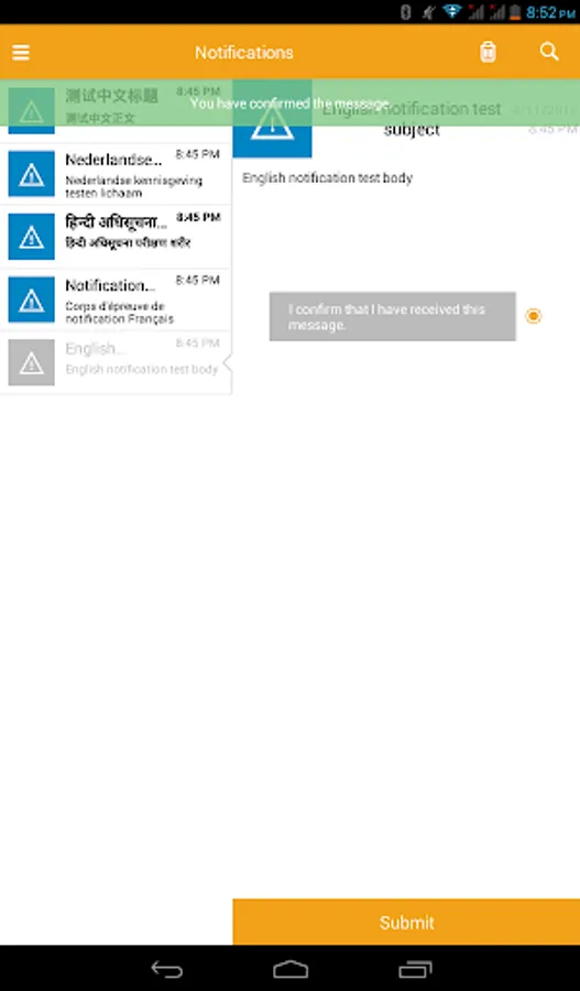 • Receive notifications sent to user from AlertFind