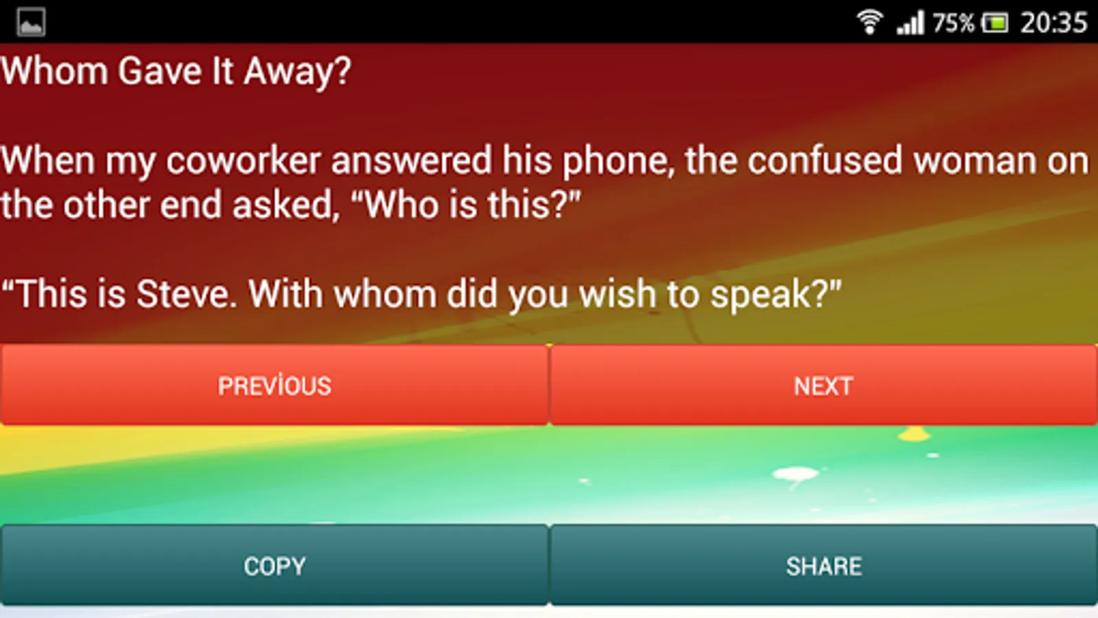 This is the finest short funny stories collection in the world! Laugh at a huge collection of jokes ! :)