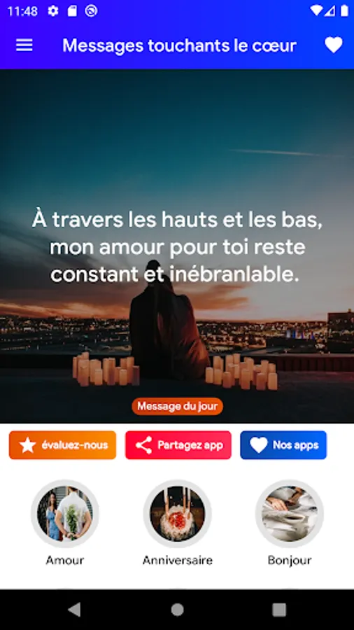 Check out the free 'Heart Touching Messages' app! Our app allows you to express your emotions in a special way through a huge selection of messages divided into 15 unique categories, some examples of which are: