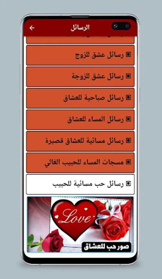 Love messages for lovers is an application available on Android smartphone platforms, that contains a set of love messages that users can send to the person they love. The application contains many different options such as love messages, poetry, love phrases, new love messages. The application also contains madly in love messages, and the different designs that can be chosen to make the message for love more attractive.