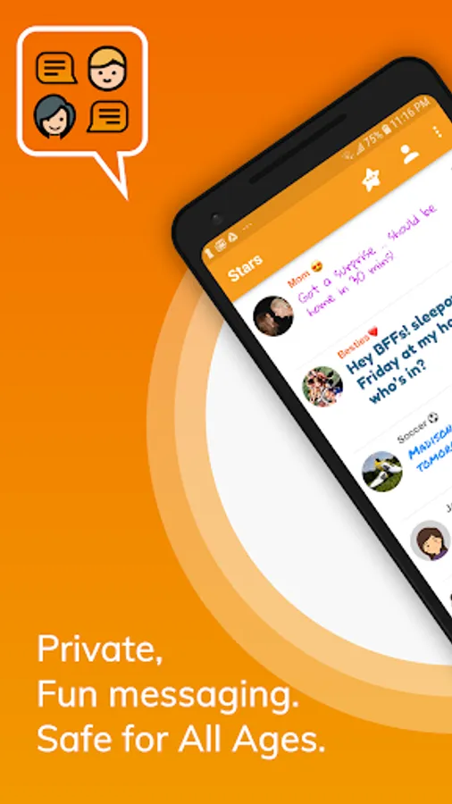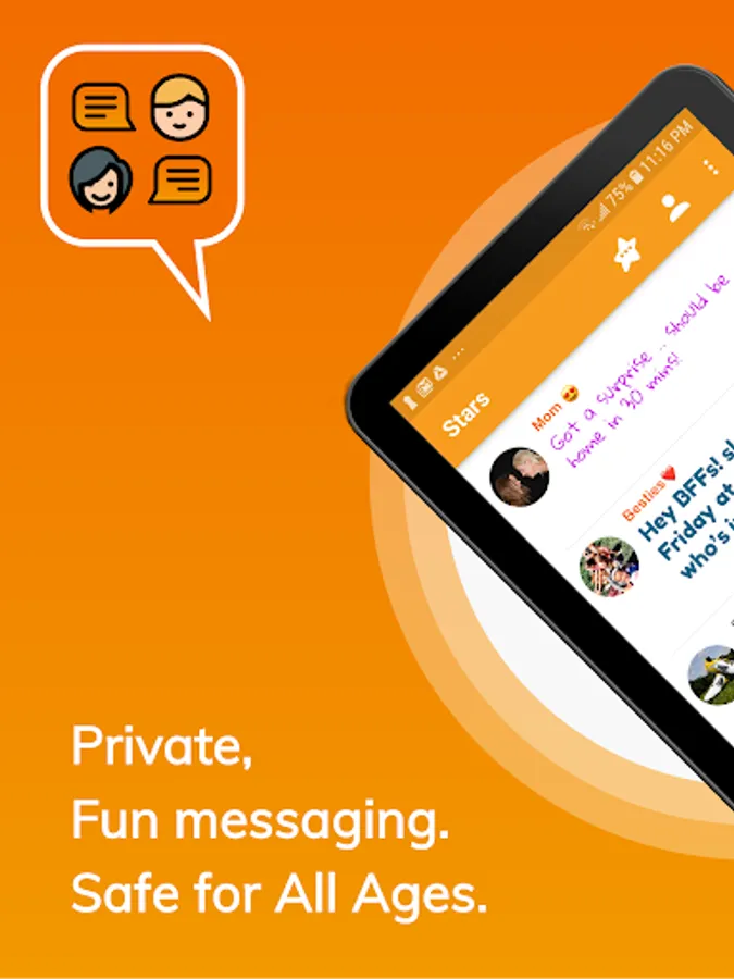 Stars is designed to be a Private, Fun and Safe Messenger for Kids , Families and Everyone else. No phone numbers, no address book uploads, no creeps and no spammers. You control who can chat with you. Completely Private & Free messaging with your trusted contacts.